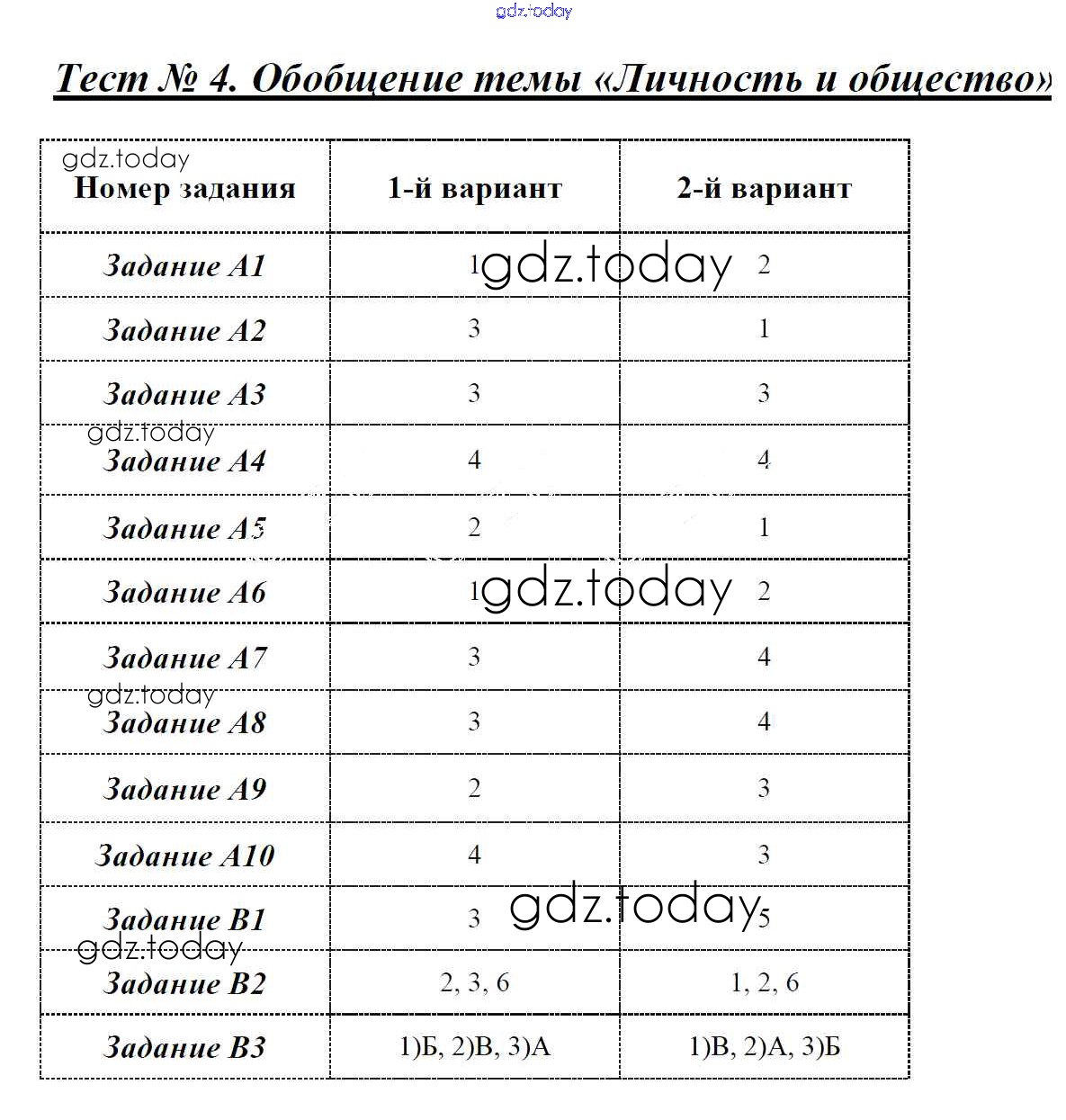 На страницах сайта gdz.today вы найдете учебный и вспомогательный материал, направленный на улучшения знаний школьной программы. ГДЗ - онлайн мир знаний Решение к тестам Тест №4. Обобщение темы - Личность и общество Контрольно-измерительным материалам (КИМ) по Обществознанию для 8 класса Поздеев ВАКО 2017