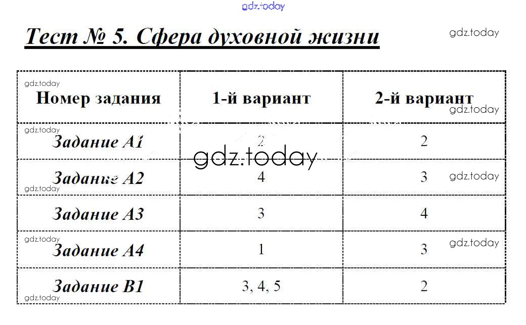 На страницах сайта gdz.today вы найдете учебный и вспомогательный материал, направленный на улучшения знаний школьной программы. ГДЗ - онлайн мир знаний Решение к тестам Тест №5. Сфера духовной жизни Контрольно-измерительным материалам (КИМ) по Обществознанию для 8 класса Поздеев ВАКО 2017