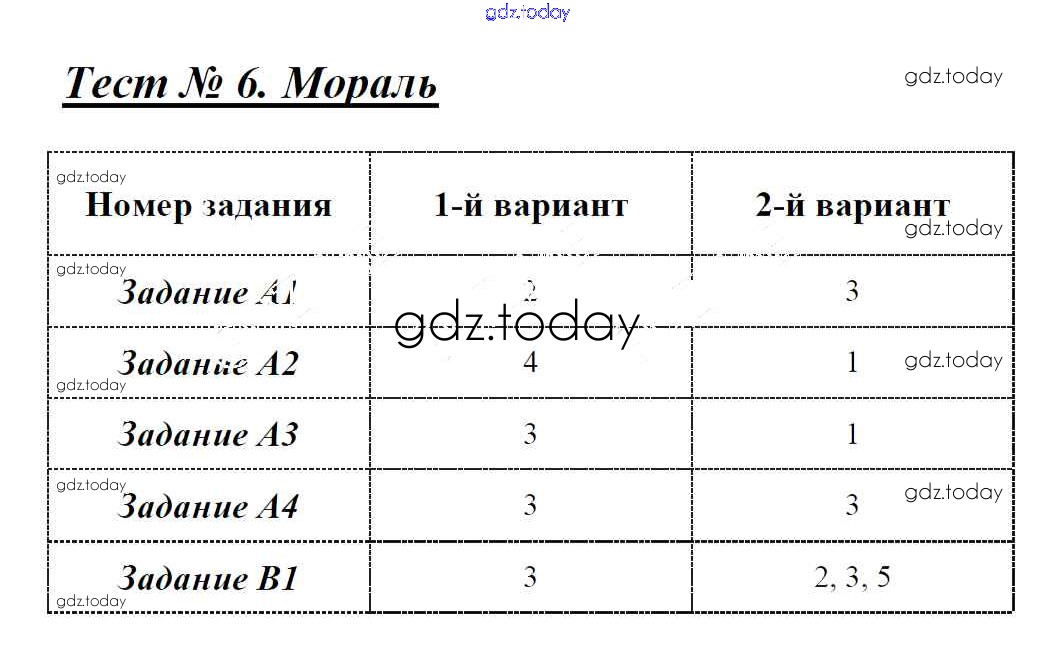 На страницах сайта gdz.today вы найдете учебный и вспомогательный материал, направленный на улучшения знаний школьной программы. ГДЗ - онлайн мир знаний Решение к тестам Тест №6. Мораль Контрольно-измерительным материалам (КИМ) по Обществознанию для 8 класса Поздеев ВАКО 2017