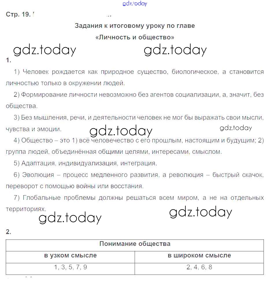 На страницах сайта gdz.today вы найдете учебный и вспомогательный материал, направленный на улучшения знаний школьной программы. ГДЗ - онлайн мир знаний Решение к глава 1. Личность и общество стр.19 Рабочей тетради по Обществознанию для 8 класса Котова, Лискова Просвещение 2017