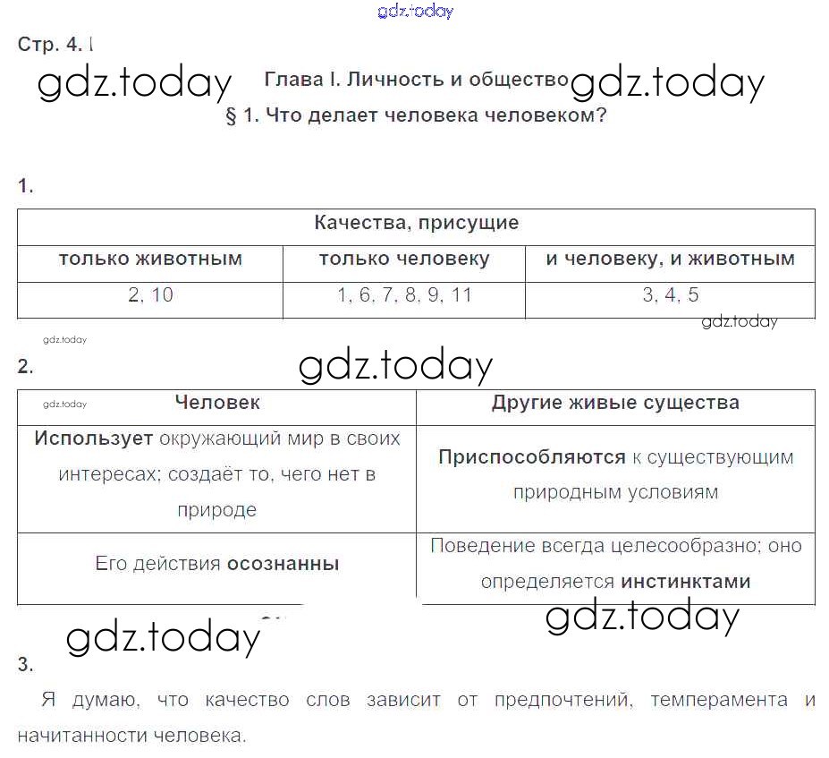 Ответы к Решение к глава 1. Личность и общество стр.4 Рабочей тетради по Обществознанию для 8 класса Котова, Лискова Просвещение 2017