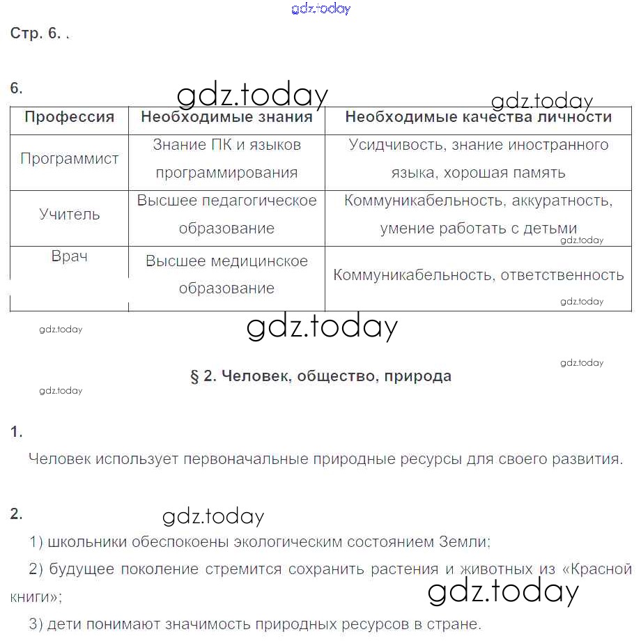 Ответы к Решение к глава 1. Личность и общество стр.6 Рабочей тетради по Обществознанию для 8 класса Котова, Лискова Просвещение 2017