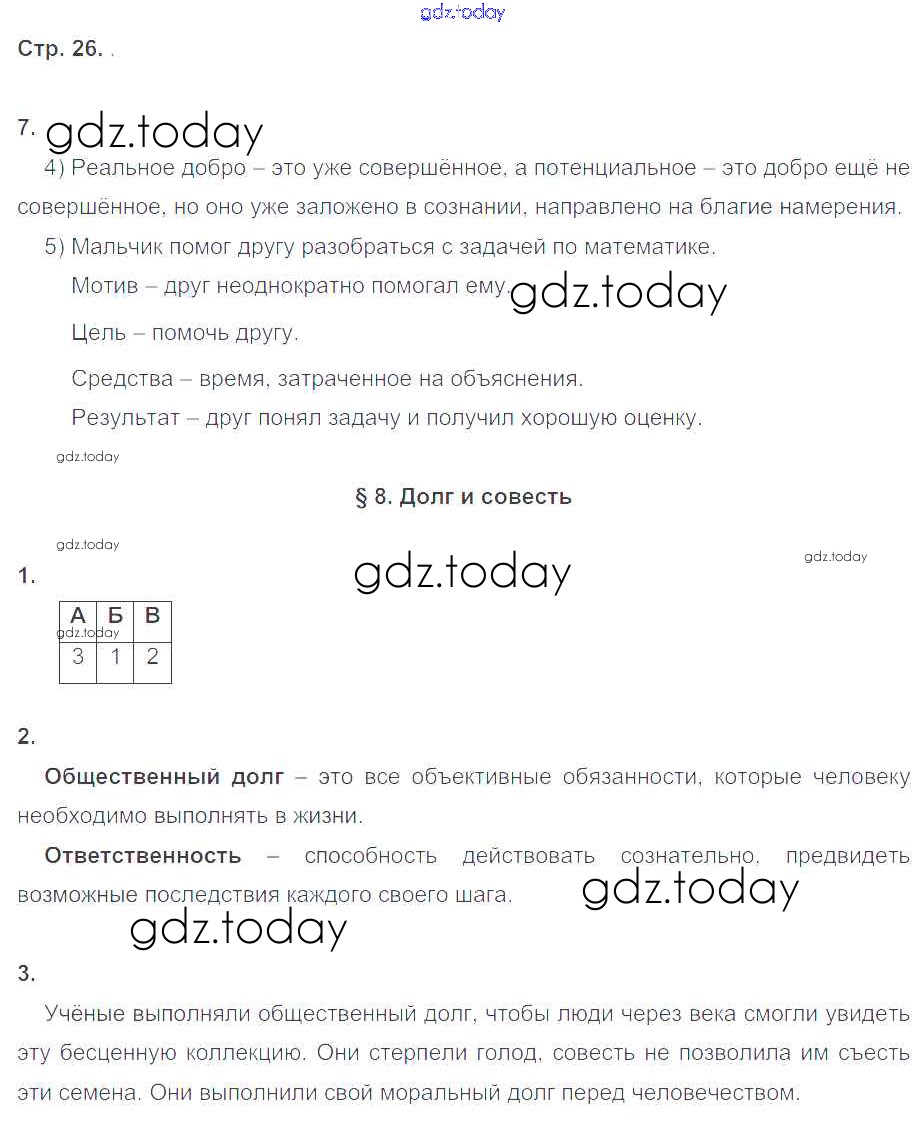 На страницах сайта gdz.today вы найдете учебный и вспомогательный материал, направленный на улучшения знаний школьной программы. ГДЗ - онлайн мир знаний Решение к глава 2. Сфера духовной культуры стр.26 Рабочей тетради по Обществознанию для 8 класса Котова, Лискова Просвещение 2017