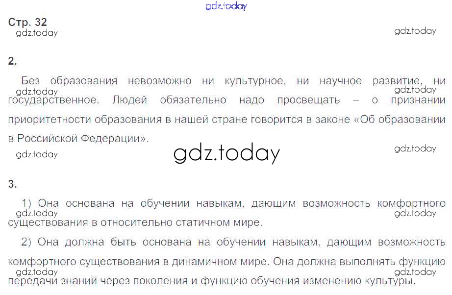 На страницах сайта gdz.today вы найдете учебный и вспомогательный материал, направленный на улучшения знаний школьной программы. ГДЗ - онлайн мир знаний Решение к глава 2. Сфера духовной культуры стр.32 Рабочей тетради по Обществознанию для 8 класса Котова, Лискова Просвещение 2017
