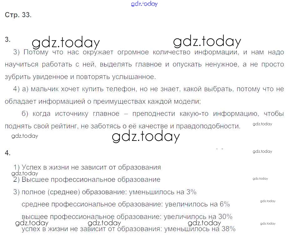 На страницах сайта gdz.today вы найдете учебный и вспомогательный материал, направленный на улучшения знаний школьной программы. ГДЗ - онлайн мир знаний Решение к глава 2. Сфера духовной культуры стр.33 Рабочей тетради по Обществознанию для 8 класса Котова, Лискова Просвещение 2017