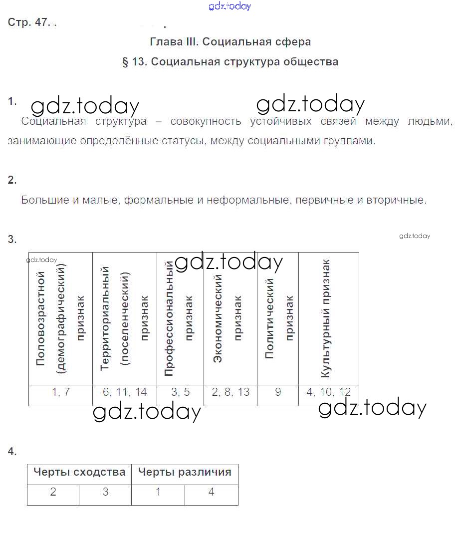 Ответы к Решение к глава 3. Социальная сфера стр.47 Рабочей тетради по Обществознанию для 8 класса Котова, Лискова Просвещение 2017