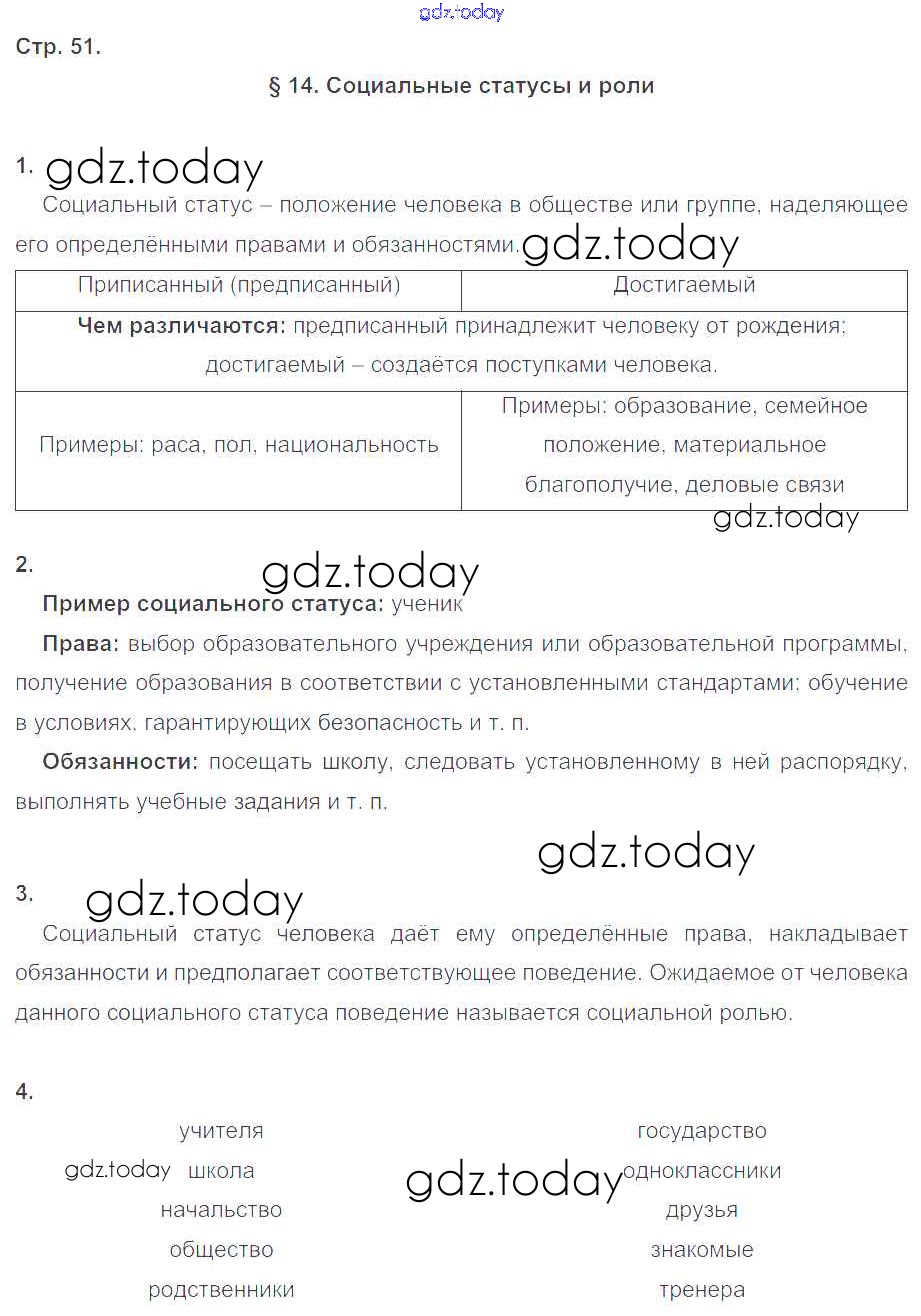 Ответы к Решение к глава 3. Социальная сфера стр.51 Рабочей тетради по Обществознанию для 8 класса Котова, Лискова Просвещение 2017