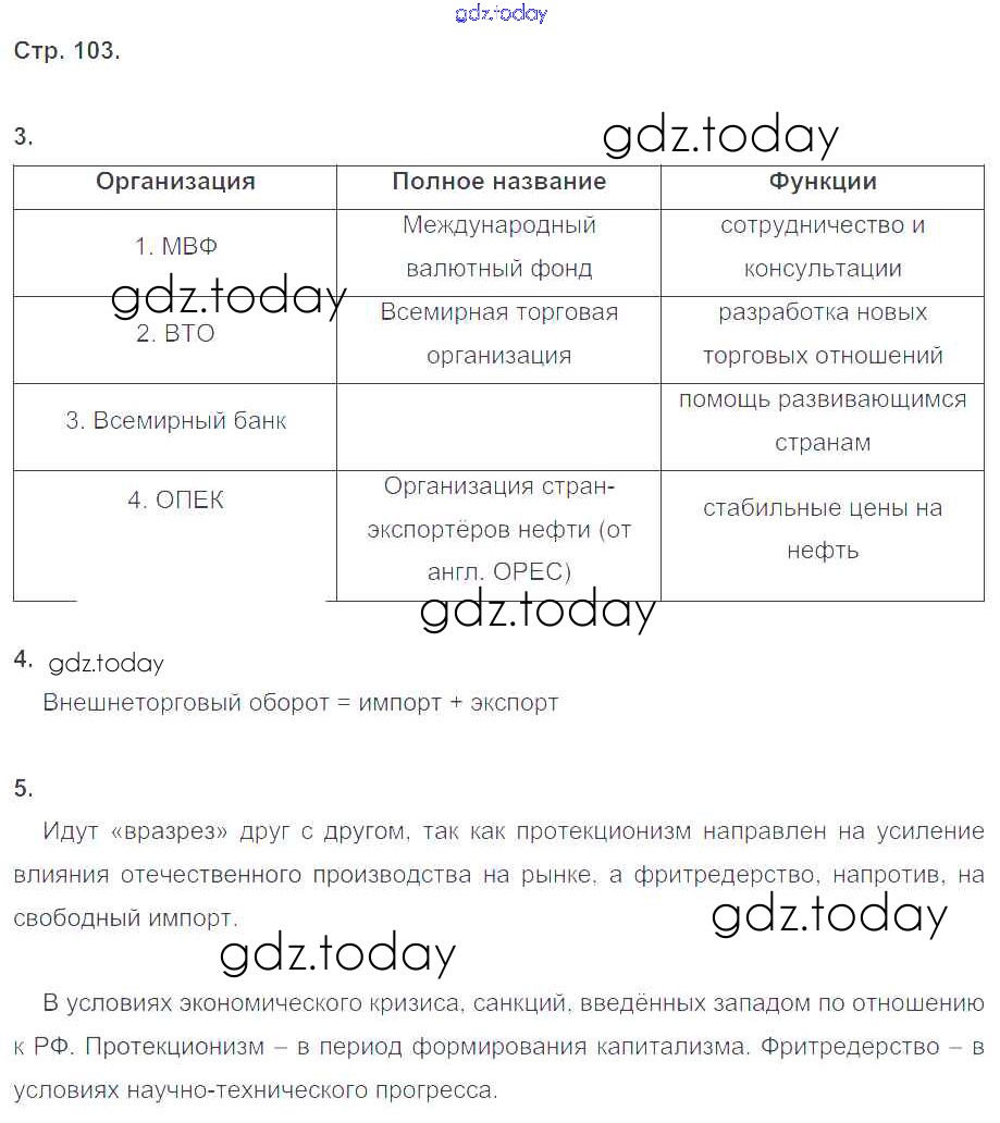 На страницах сайта gdz.today вы найдете учебный и вспомогательный материал, направленный на улучшения знаний школьной программы. ГДЗ - онлайн мир знаний Решение к глава 4. Экономика стр.103 Рабочей тетради по Обществознанию для 8 класса Котова, Лискова Просвещение 2017