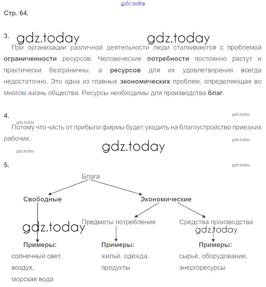 Ответы к Решение к глава 4. Экономика стр.64 Рабочей тетради по Обществознанию для 8 класса Котова, Лискова Просвещение 2017
