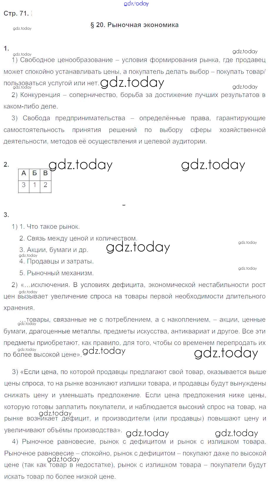 На страницах сайта gdz.today вы найдете учебный и вспомогательный материал, направленный на улучшения знаний школьной программы. ГДЗ - онлайн мир знаний Решение к глава 4. Экономика стр.71 Рабочей тетради по Обществознанию для 8 класса Котова, Лискова Просвещение 2017