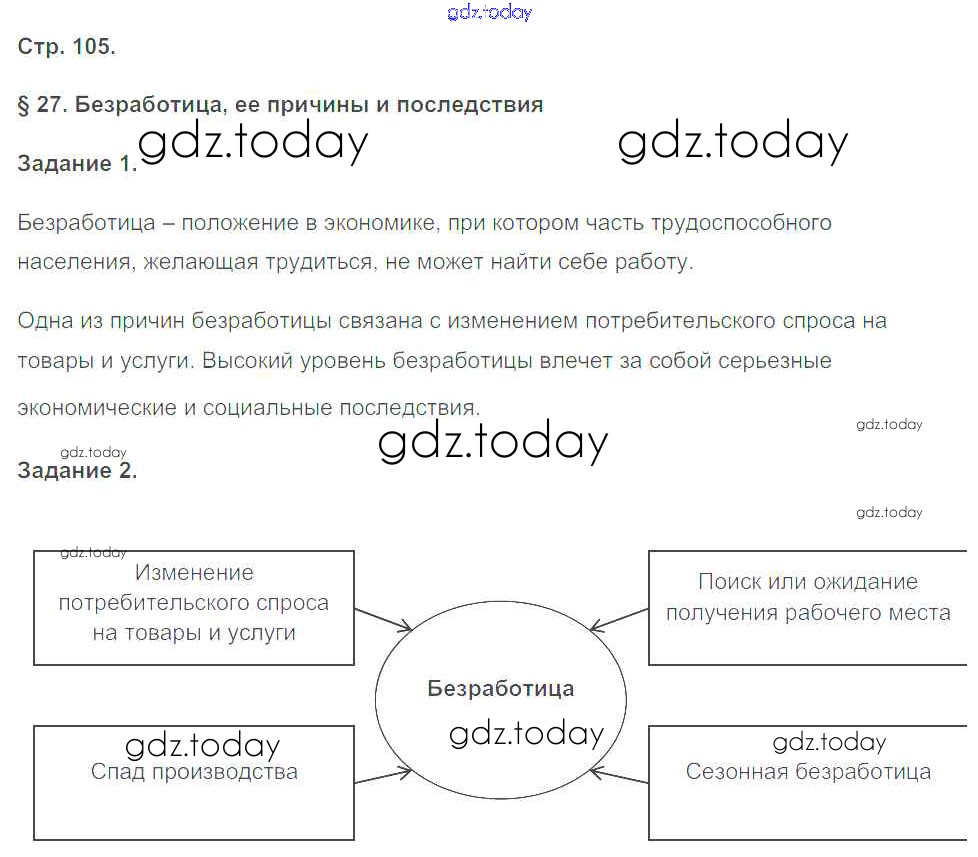 На страницах сайта gdz.today вы найдете учебный и вспомогательный материал, направленный на улучшения знаний школьной программы. ГДЗ - онлайн мир знаний Страницы (решение) 105 Рабочей тетради по Обществознанию для 8 класса Митькин Экзамен УМК 2017