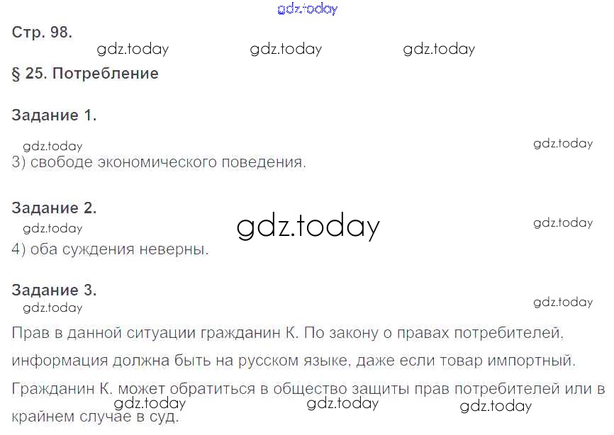 На страницах сайта gdz.today вы найдете учебный и вспомогательный материал, направленный на улучшения знаний школьной программы. ГДЗ - онлайн мир знаний Страницы (решение) 98 Рабочей тетради по Обществознанию для 8 класса Митькин Экзамен УМК 2017