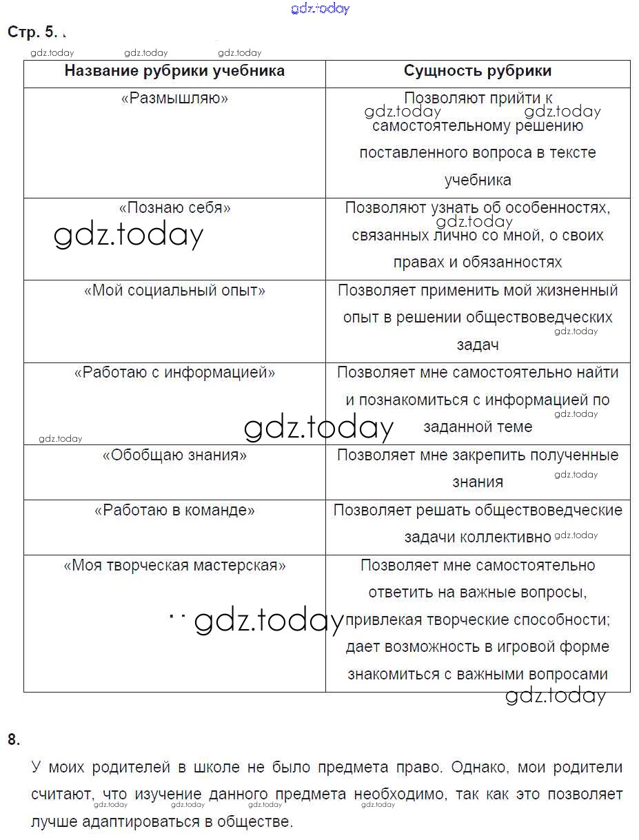 На страницах сайта gdz.today вы найдете учебный и вспомогательный материал, направленный на улучшения знаний школьной программы. ГДЗ - онлайн мир знаний Страницы (решение) 5 Рабочей тетради по Обществознанию для 8 класса Соболева, Воронцов Вентана-граф Алгоритм успеха 2018
