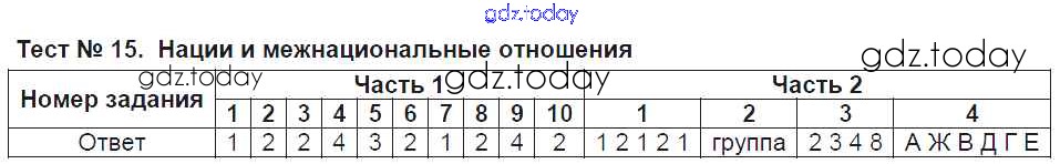 Ответы к Решение к тестам Тест №15. Нации и межнациональные отношения Тестам по Обществознанию для 8 класса Краюшкина Экзамен УМК 2017