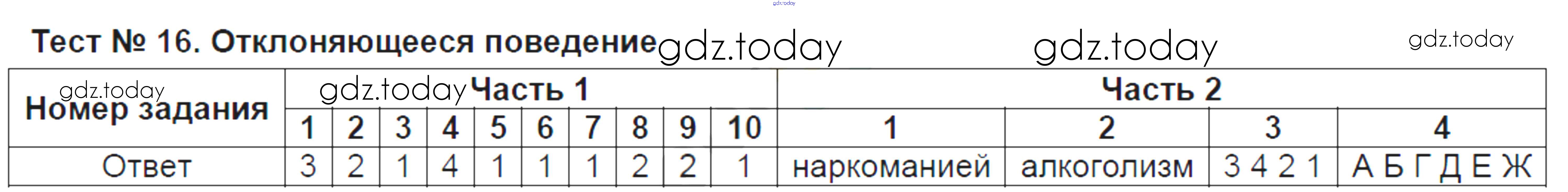 На страницах сайта gdz.today вы найдете учебный и вспомогательный материал, направленный на улучшения знаний школьной программы. ГДЗ - онлайн мир знаний Решение к тестам Тест №16. Отклоняющееся поведение Тестам по Обществознанию для 8 класса Краюшкина Экзамен УМК 2017