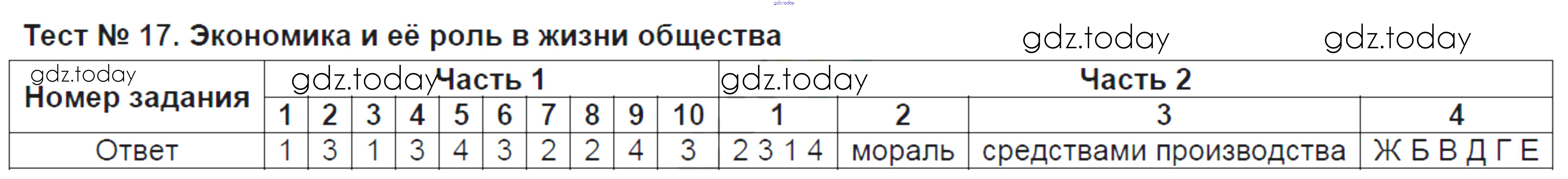 Ответы к Решение к тестам Тест №17. Экономика и её роль в жизни общества Тестам по Обществознанию для 8 класса Краюшкина Экзамен УМК 2017