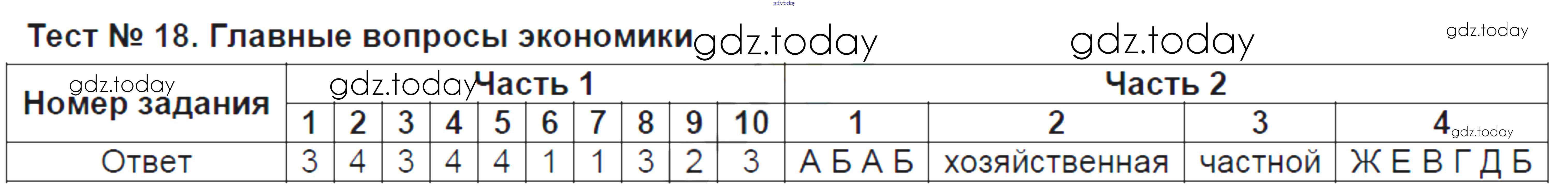 На страницах сайта gdz.today вы найдете учебный и вспомогательный материал, направленный на улучшения знаний школьной программы. ГДЗ - онлайн мир знаний Решение к тестам Тест №18. Главные вопросы экономики Тестам по Обществознанию для 8 класса Краюшкина Экзамен УМК 2017
