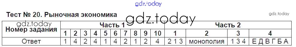 На страницах сайта gdz.today вы найдете учебный и вспомогательный материал, направленный на улучшения знаний школьной программы. ГДЗ - онлайн мир знаний Решение к тестам Тест №20. Рыночная экономика Тестам по Обществознанию для 8 класса Краюшкина Экзамен УМК 2017