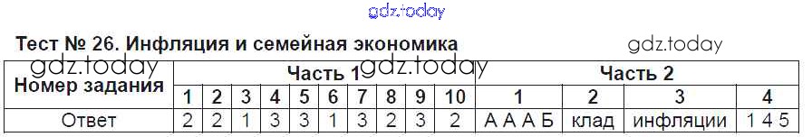 Ответы к Решение к тестам Тест №26. Инфляция и семейная экономика Тестам по Обществознанию для 8 класса Краюшкина Экзамен УМК 2017