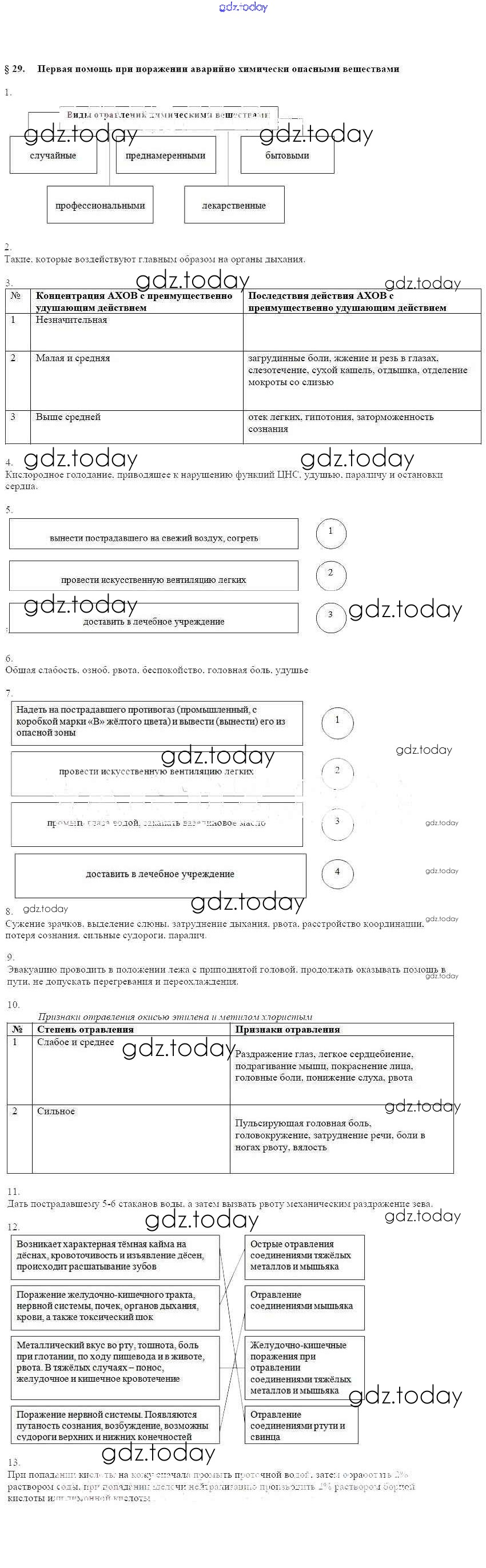 Ответы к Решение к параграфам §29 Рабочей тетради по ОБЖ для 8 класса Латчук, Миронов Дрофа Вертикаль 2018