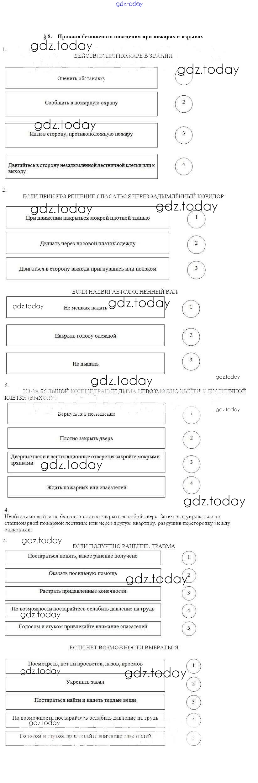 На страницах сайта gdz.today вы найдете учебный и вспомогательный материал, направленный на улучшения знаний школьной программы. ГДЗ - онлайн мир знаний Решение к параграфам §8 Рабочей тетради по ОБЖ для 8 класса Латчук, Миронов Дрофа Вертикаль 2018