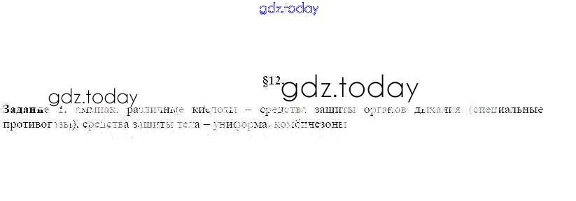 Ответы к §12 Решение к главе 3. Аварии с выбросом опасных химических веществ 1 Рабочей тетради по ОБЖ для 8 класса Подолян Дрофа 2017