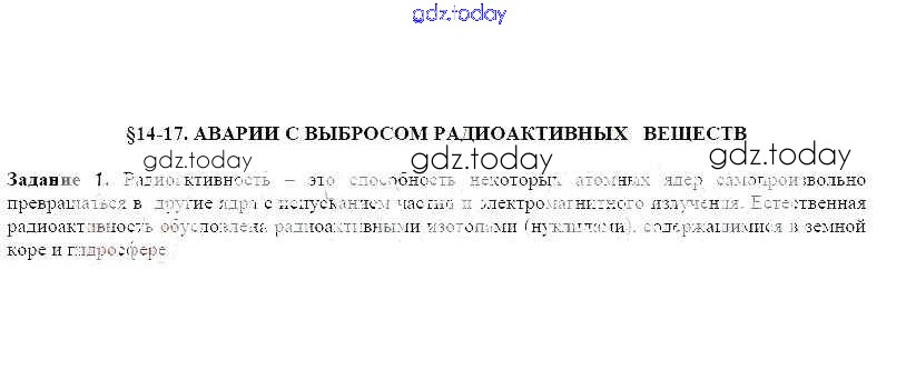 На страницах сайта gdz.today вы найдете учебный и вспомогательный материал, направленный на улучшения знаний школьной программы. ГДЗ - онлайн мир знаний §14-17 Решение к главе 4. Аварии с выбросом радиоактивных веществ 1 Рабочей тетради по ОБЖ для 8 класса Подолян Дрофа 2017