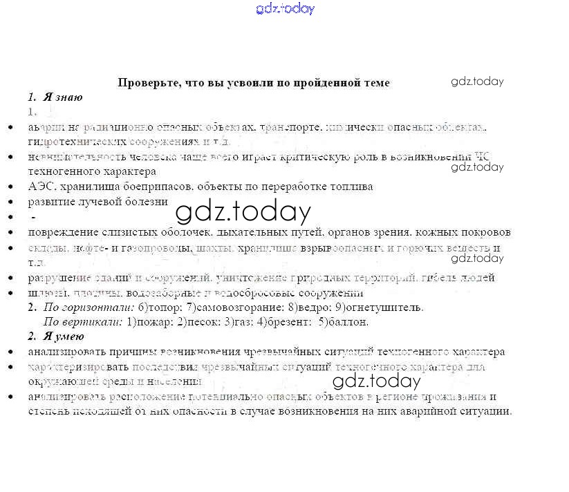 На страницах сайта gdz.today вы найдете учебный и вспомогательный материал, направленный на улучшения знаний школьной программы. ГДЗ - онлайн мир знаний Решение к главе 5 Проверьте свои знания Рабочей тетради по ОБЖ для 8 класса Смирнов, Хренников Просвещение 2013