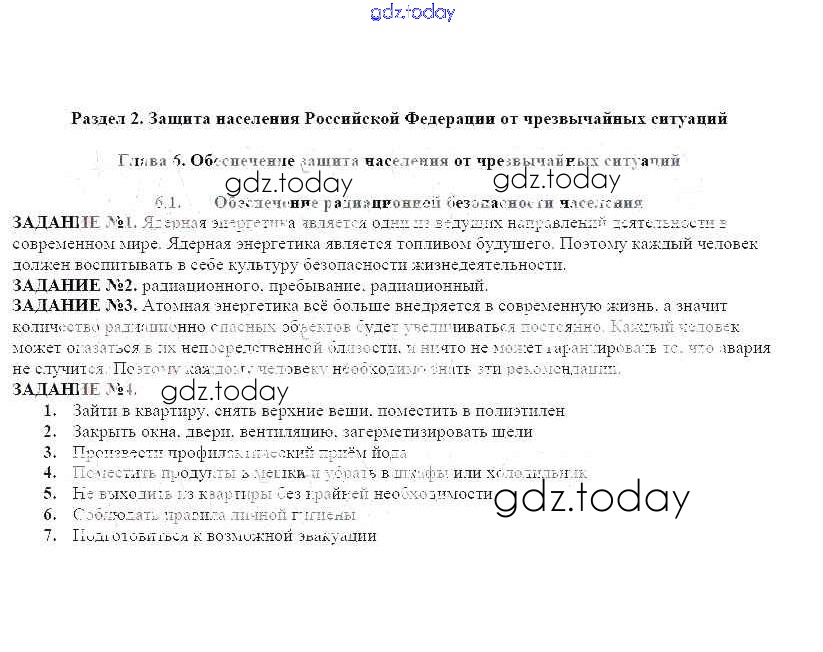 На страницах сайта gdz.today вы найдете учебный и вспомогательный материал, направленный на улучшения знаний школьной программы. ГДЗ - онлайн мир знаний Решение к главе 6 6.1 Рабочей тетради по ОБЖ для 8 класса Смирнов, Хренников Просвещение 2013