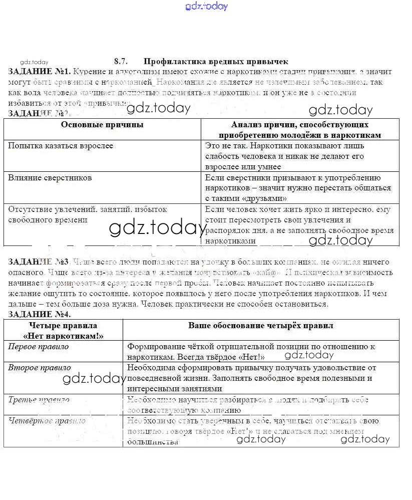 На страницах сайта gdz.today вы найдете учебный и вспомогательный материал, направленный на улучшения знаний школьной программы. ГДЗ - онлайн мир знаний Решение к главе 8 8.7 Рабочей тетради по ОБЖ для 8 класса Смирнов, Хренников Просвещение 2013