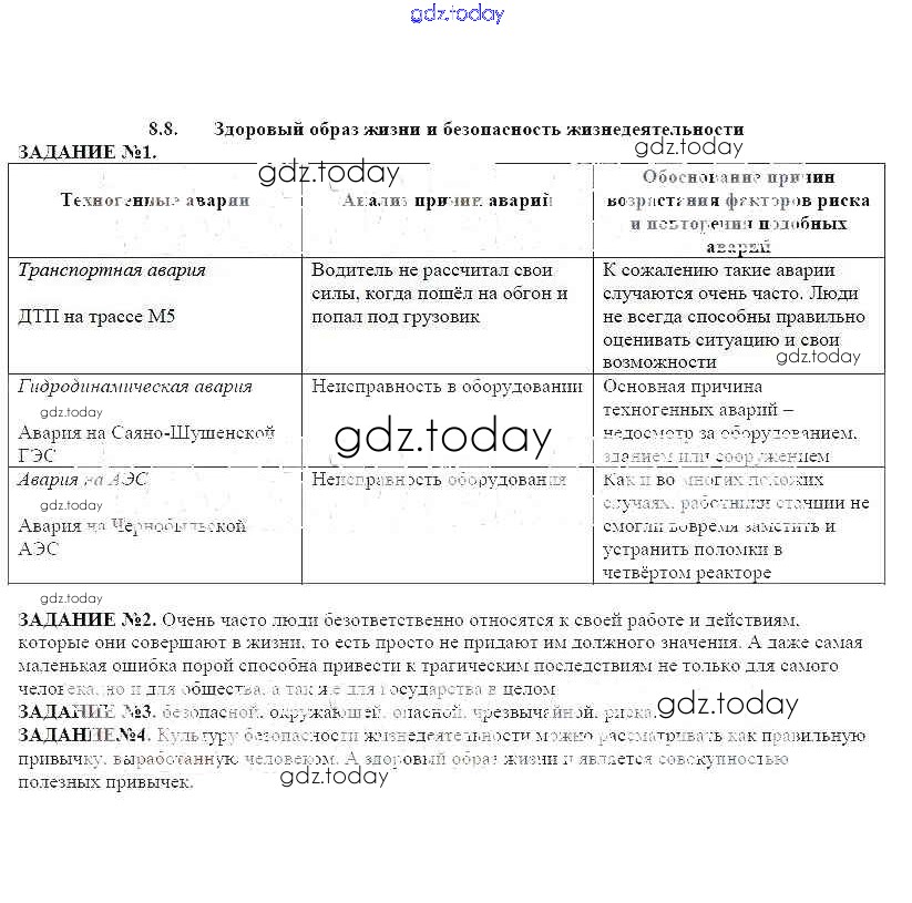 На страницах сайта gdz.today вы найдете учебный и вспомогательный материал, направленный на улучшения знаний школьной программы. ГДЗ - онлайн мир знаний Решение к главе 8 8.8 Рабочей тетради по ОБЖ для 8 класса Смирнов, Хренников Просвещение 2013
