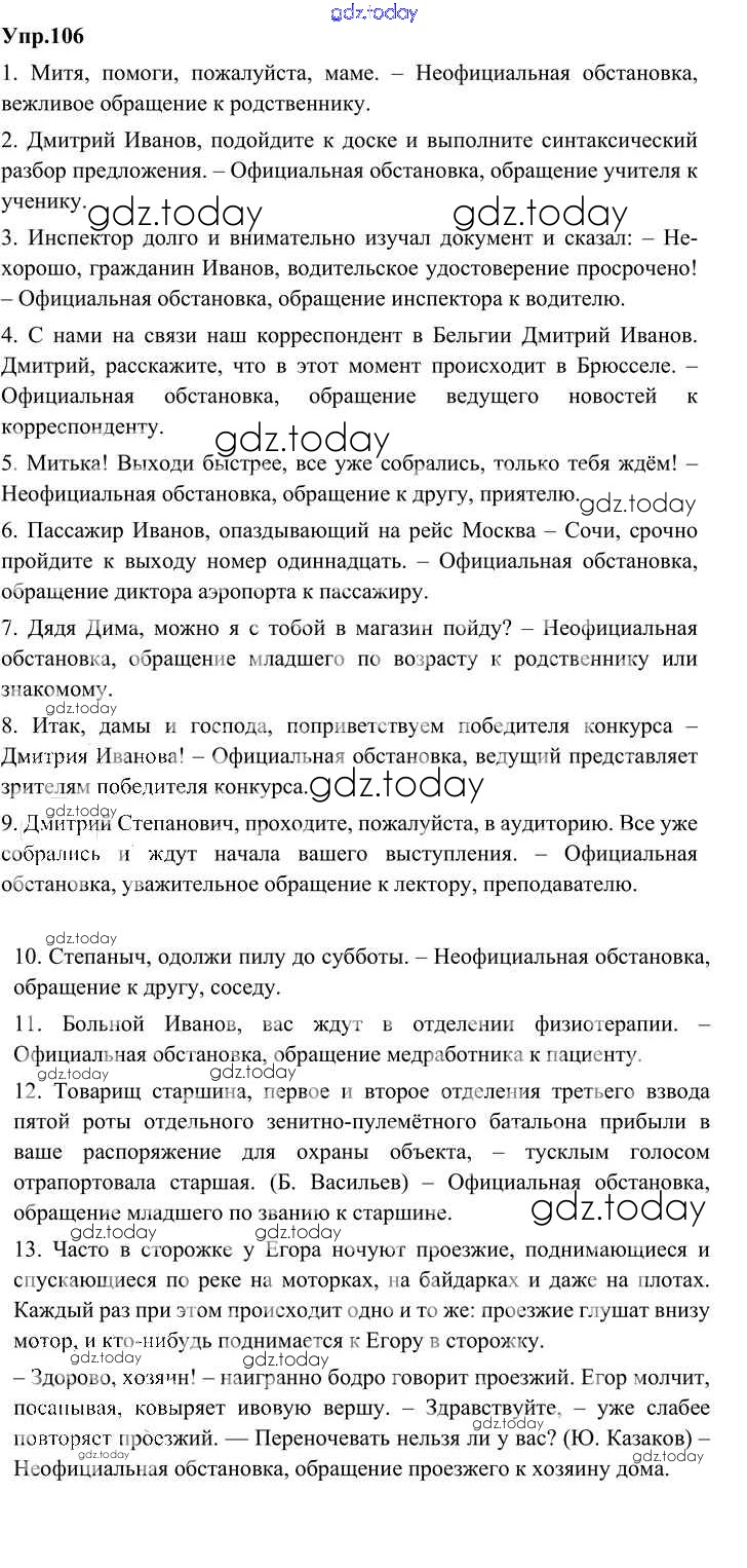 На страницах сайта gdz.today вы найдете учебный и вспомогательный материал, направленный на улучшения знаний школьной программы. ГДЗ - онлайн мир знаний Решение к упражнениям 106 Учебнику по Русскому языку для 8 класса Александрова, Загоровская Просвещение 2020