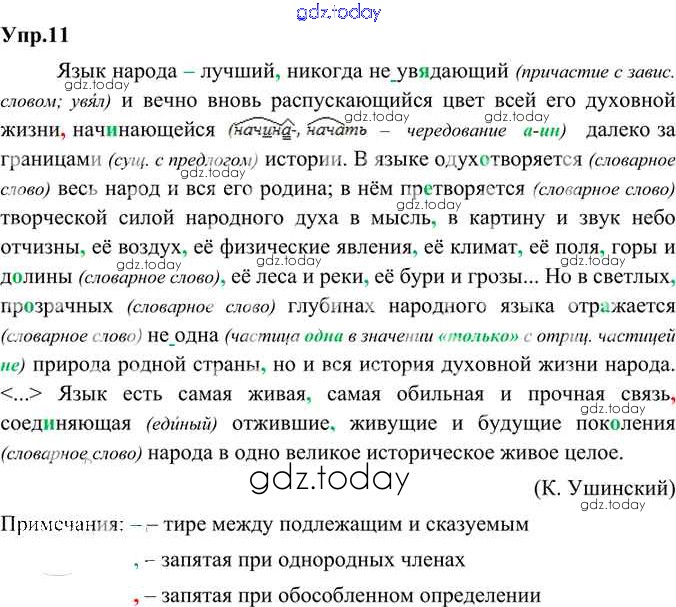 На страницах сайта gdz.today вы найдете учебный и вспомогательный материал, направленный на улучшения знаний школьной программы. ГДЗ - онлайн мир знаний Решение к упражнениям 11 Учебнику по Русскому языку для 8 класса Александрова, Загоровская Просвещение 2020