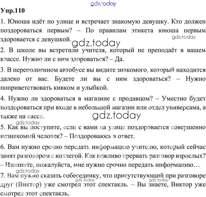 На страницах сайта gdz.today вы найдете учебный и вспомогательный материал, направленный на улучшения знаний школьной программы. ГДЗ - онлайн мир знаний Решение к упражнениям 110 Учебнику по Русскому языку для 8 класса Александрова, Загоровская Просвещение 2020