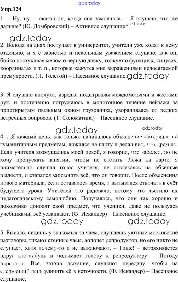 Ответы к Решение к упражнениям 124 Учебнику по Русскому языку для 8 класса Александрова, Загоровская Просвещение 2020