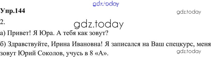 Ответы к Решение к упражнениям 144 Учебнику по Русскому языку для 8 класса Александрова, Загоровская Просвещение 2020