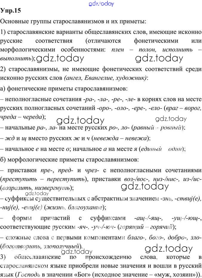 Ответы к Решение к упражнениям 15 Учебнику по Русскому языку для 8 класса Александрова, Загоровская Просвещение 2020