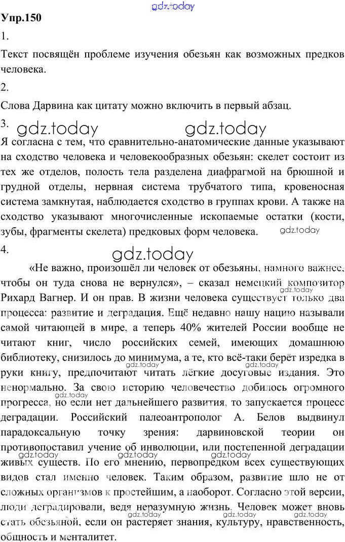 На страницах сайта gdz.today вы найдете учебный и вспомогательный материал, направленный на улучшения знаний школьной программы. ГДЗ - онлайн мир знаний Решение к упражнениям 150 Учебнику по Русскому языку для 8 класса Александрова, Загоровская Просвещение 2020