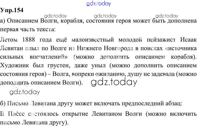 На страницах сайта gdz.today вы найдете учебный и вспомогательный материал, направленный на улучшения знаний школьной программы. ГДЗ - онлайн мир знаний Решение к упражнениям 154 Учебнику по Русскому языку для 8 класса Александрова, Загоровская Просвещение 2020