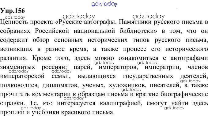 На страницах сайта gdz.today вы найдете учебный и вспомогательный материал, направленный на улучшения знаний школьной программы. ГДЗ - онлайн мир знаний Решение к упражнениям 156 Учебнику по Русскому языку для 8 класса Александрова, Загоровская Просвещение 2020
