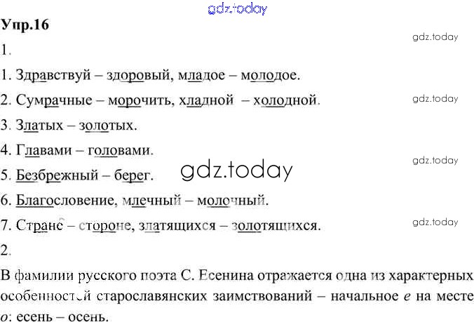 На страницах сайта gdz.today вы найдете учебный и вспомогательный материал, направленный на улучшения знаний школьной программы. ГДЗ - онлайн мир знаний Решение к упражнениям 16 Учебнику по Русскому языку для 8 класса Александрова, Загоровская Просвещение 2020