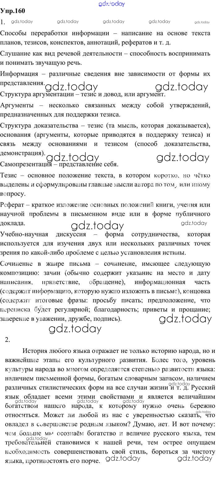 На страницах сайта gdz.today вы найдете учебный и вспомогательный материал, направленный на улучшения знаний школьной программы. ГДЗ - онлайн мир знаний Решение к упражнениям 160 Учебнику по Русскому языку для 8 класса Александрова, Загоровская Просвещение 2020