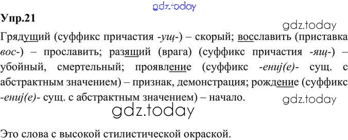На страницах сайта gdz.today вы найдете учебный и вспомогательный материал, направленный на улучшения знаний школьной программы. ГДЗ - онлайн мир знаний Решение к упражнениям 21 Учебнику по Русскому языку для 8 класса Александрова, Загоровская Просвещение 2020