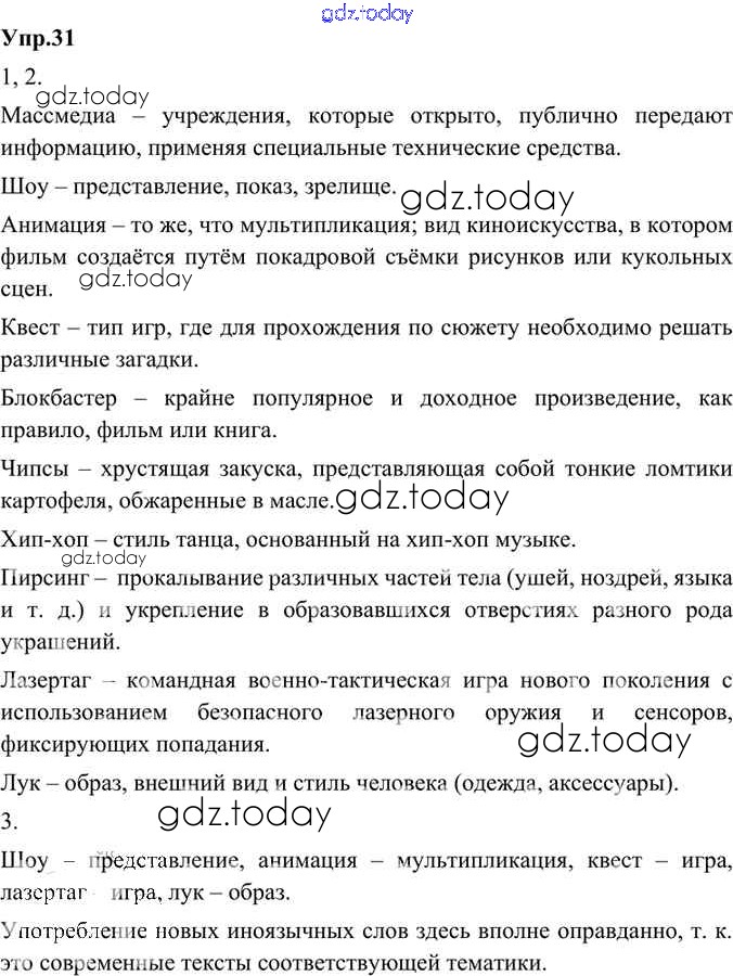 На страницах сайта gdz.today вы найдете учебный и вспомогательный материал, направленный на улучшения знаний школьной программы. ГДЗ - онлайн мир знаний Решение к упражнениям 31 Учебнику по Русскому языку для 8 класса Александрова, Загоровская Просвещение 2020