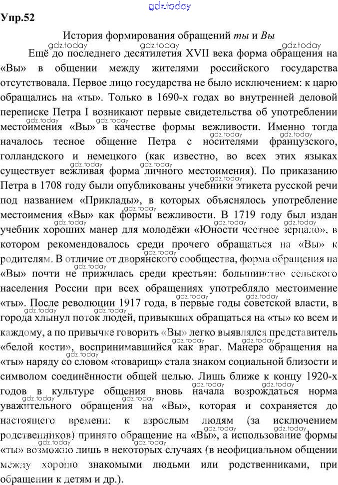 На страницах сайта gdz.today вы найдете учебный и вспомогательный материал, направленный на улучшения знаний школьной программы. ГДЗ - онлайн мир знаний Решение к упражнениям 52 Учебнику по Русскому языку для 8 класса Александрова, Загоровская Просвещение 2020