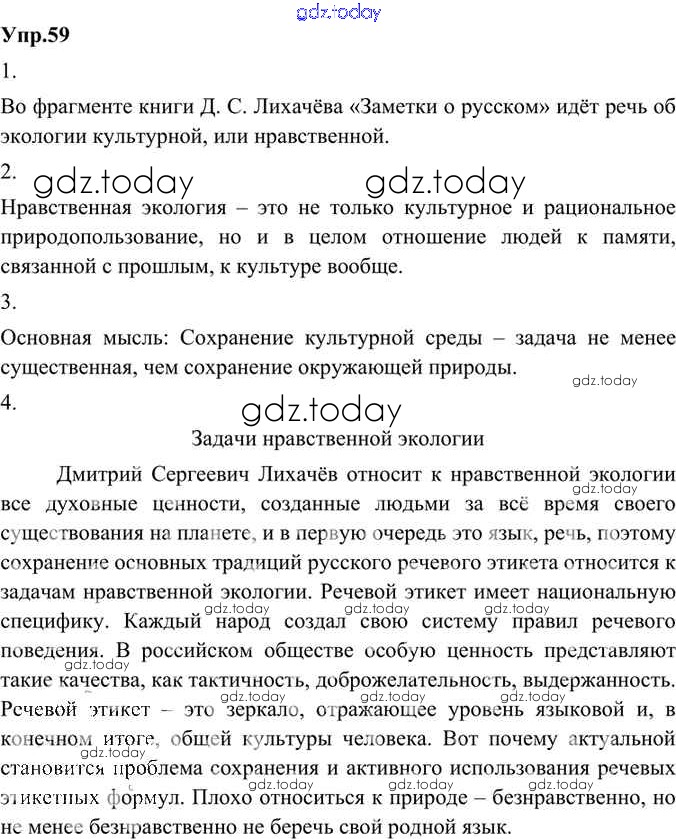На страницах сайта gdz.today вы найдете учебный и вспомогательный материал, направленный на улучшения знаний школьной программы. ГДЗ - онлайн мир знаний Решение к упражнениям 59 Учебнику по Русскому языку для 8 класса Александрова, Загоровская Просвещение 2020