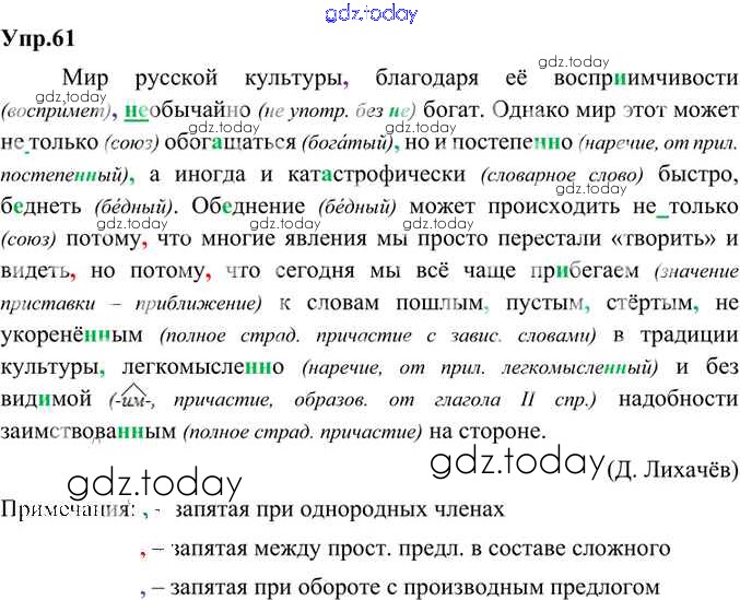 На страницах сайта gdz.today вы найдете учебный и вспомогательный материал, направленный на улучшения знаний школьной программы. ГДЗ - онлайн мир знаний Решение к упражнениям 61 Учебнику по Русскому языку для 8 класса Александрова, Загоровская Просвещение 2020