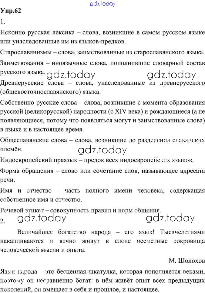 Ответы к Решение к упражнениям 62 Учебнику по Русскому языку для 8 класса Александрова, Загоровская Просвещение 2020