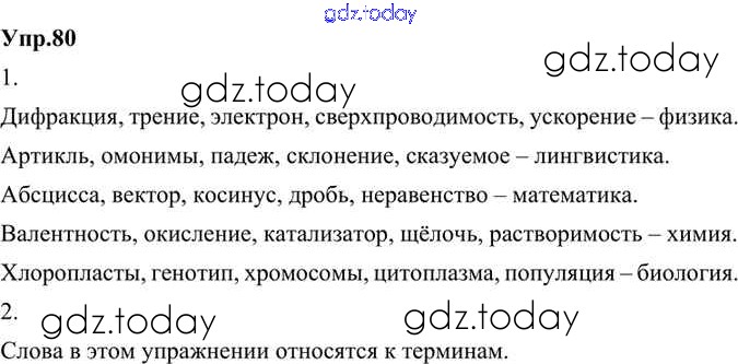 На страницах сайта gdz.today вы найдете учебный и вспомогательный материал, направленный на улучшения знаний школьной программы. ГДЗ - онлайн мир знаний Решение к упражнениям 80 Учебнику по Русскому языку для 8 класса Александрова, Загоровская Просвещение 2020