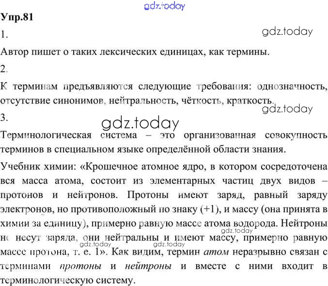 На страницах сайта gdz.today вы найдете учебный и вспомогательный материал, направленный на улучшения знаний школьной программы. ГДЗ - онлайн мир знаний Решение к упражнениям 81 Учебнику по Русскому языку для 8 класса Александрова, Загоровская Просвещение 2020
